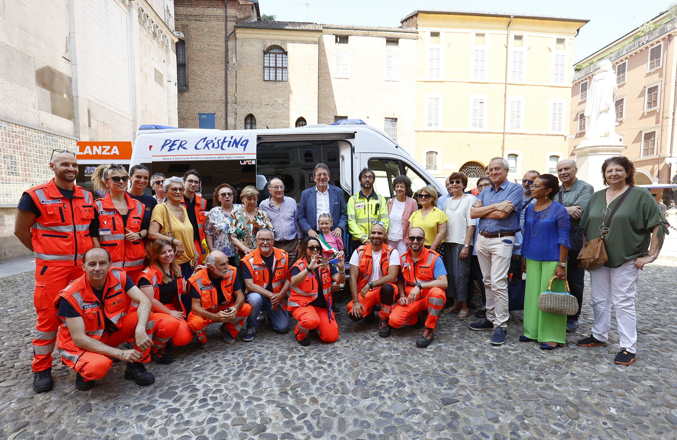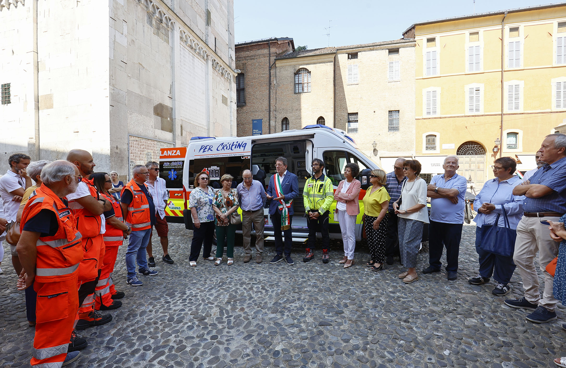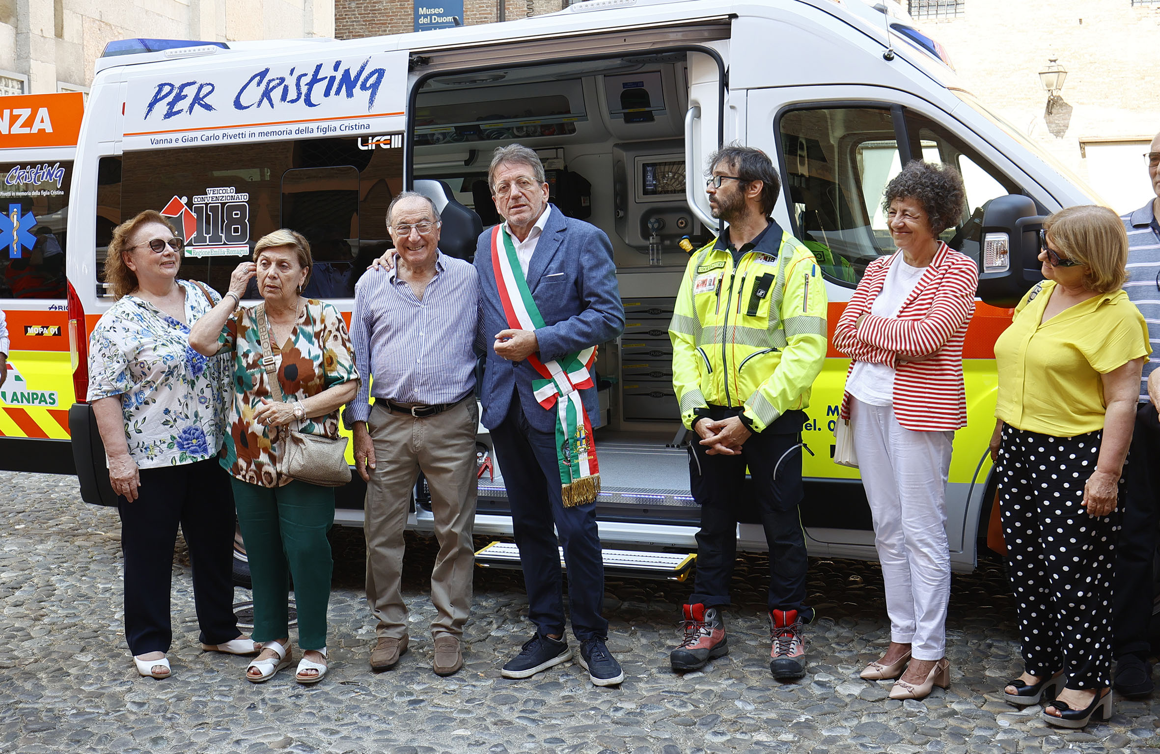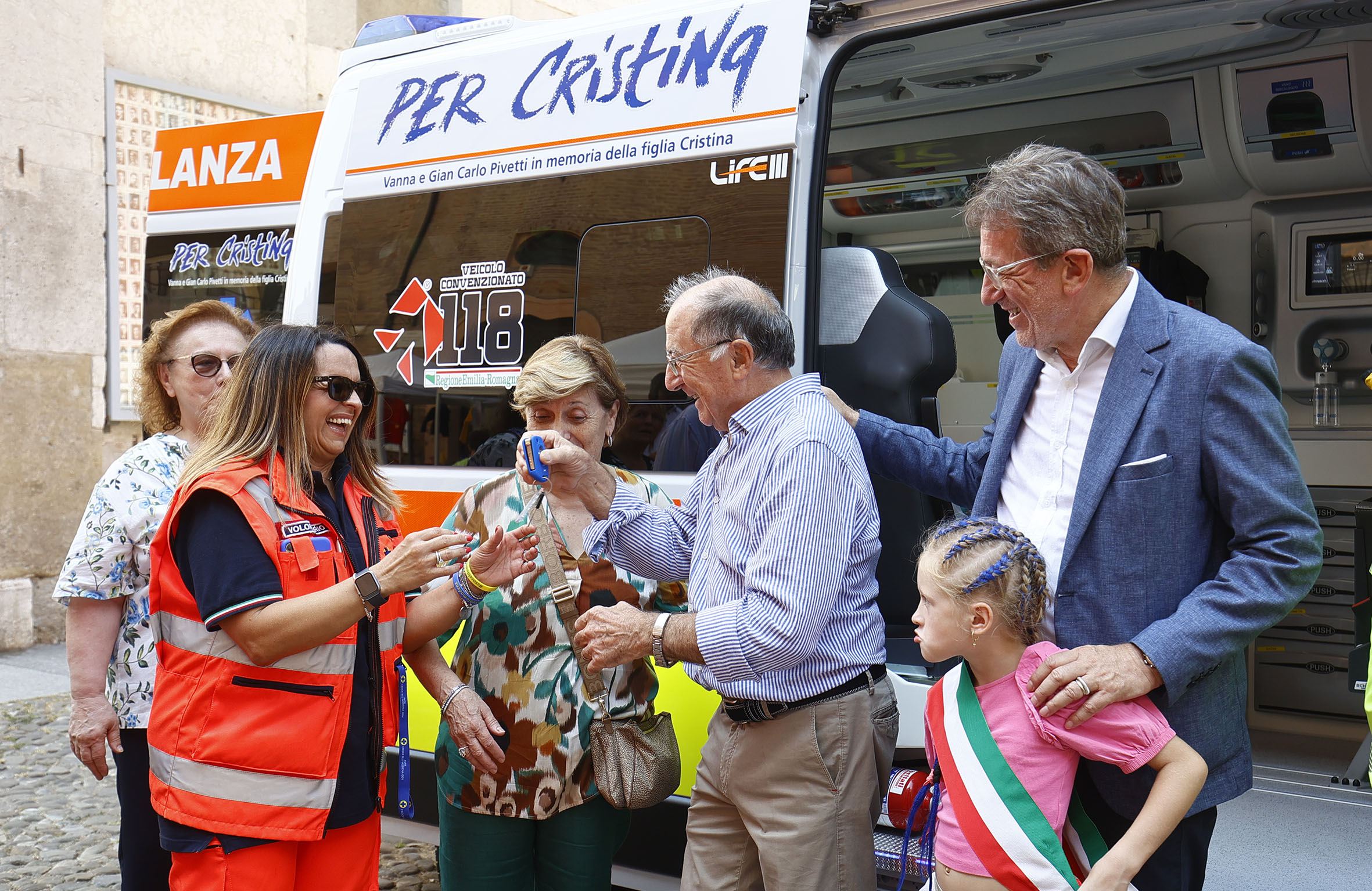 “Blu 1” è stata inaugurata oggi, sabato 26 agosto, in una presentazione pubblica in piazza Grande a cui hanno partecipato la famiglia Pivetti, il sindaco Gian Carlo Muzzarelli, la senatrice Vincenza Rando, la consigliera regionale Francesca Maletti, la prefetta Alessandra Camporota, la questora Silvia Burdese, la vice presidente della Fondazione Hospice Modena Marinella Nasi, il coordinatore della centrale operativa del 118 Modena Fabrizio Luppi, la coordinatrice Anpas provinciale Alessandra Trabucco e, per la Croce Blu Modena, la presidente Anna Perazzelli e alcuni volontari.
