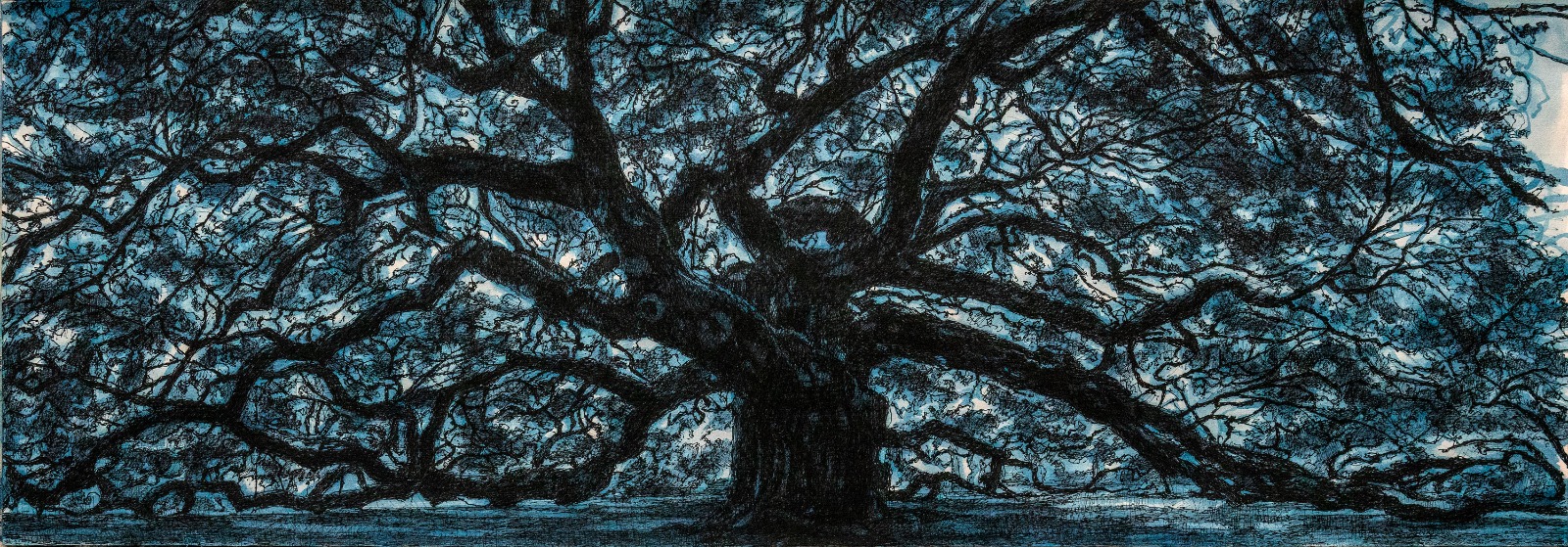 “Attraverso il disegno e la pittura – spiega Andrea Chiesi - ho indagato per oltre 20 anni il paesaggio contemporaneo, nel suo aspetto sociale e antropologico, focalizzandomi sull’impermanenza e la vacuità, secondo cui ogni fenomeno è privo di una esistenza intrinseca. Negli ultimi anni la ricerca si è orientata verso la natura, gli alberi e le piante che crescono nei luoghi lasciati dall’uomo; ho adottato uno sguardo interiore, tra la meraviglia e il sublime, influenzato anche dalla posizione del mio studio, in una zona isolata alle porte della città, circondata da alberi ribelli. Il paesaggio – aggiunge l’artista – diventa la manifestazione della legge universale di causa ed effetto che regola il Tutto, un legame cosmico di interdipendenza, che unisce indissolubilmente ogni forma, organica e inorganica, in cui ogni essere cerca, in tutti i modi possibili, la vita. La Natura vince”.