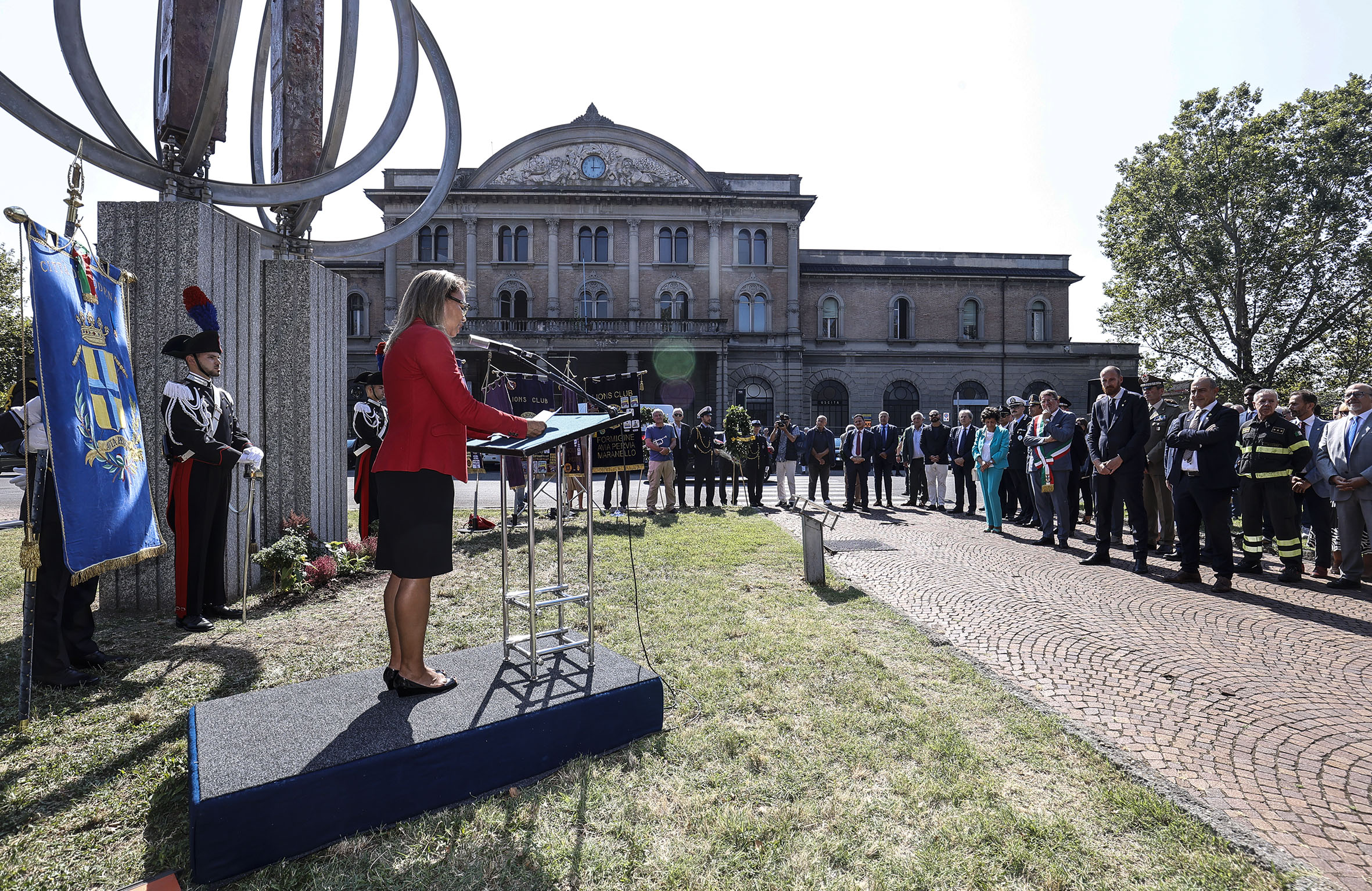 Oltre al sindaco sono intervenuti la prefetta Alessandra Camporota e i rappresentanti dei Lions che negli anni scorsi hanno donato il monumento: Livio Tempesta, presidente del Lions Club Modena Estense, e Giorgio Ferroni, Governatore Lions del Distretto 108 Tb.