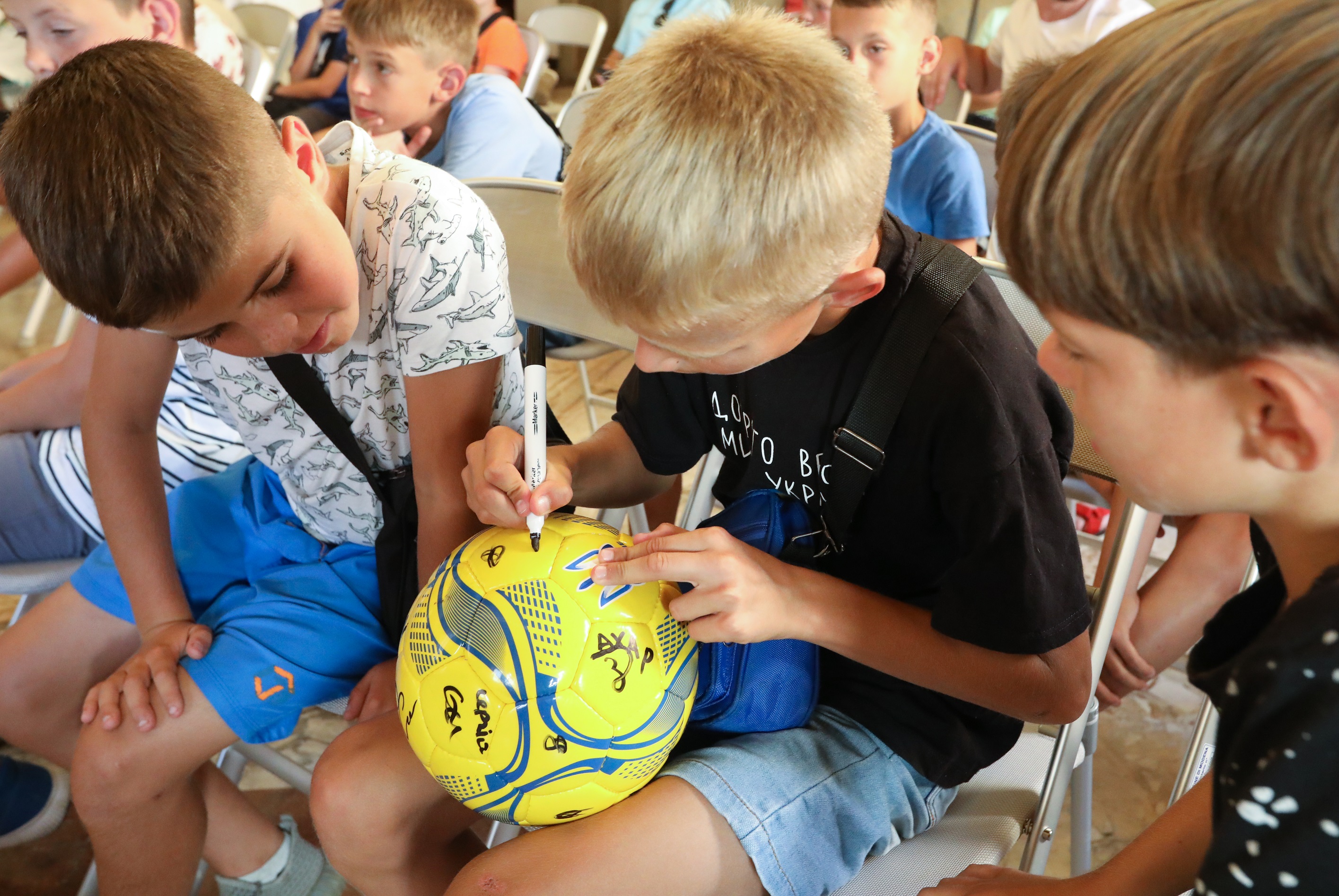 Parlando con i giovani giocatori, il sindaco Muzzarelli ha ricordato quanto “giocare sia importante per fare squadra e stare insieme, perché solo insieme si può guardare al futuro”. Al sindaco i ragazzi hanno donato un pallone da calcio con i colori dell’Ucraina firmato da tutti loro. Ai ragazzi sono state donate delle penne mentre gli accompagnatori hanno ricevuto delle stampe di Modena. Il sindaco Muzzarelli ha inviato in dono alla sindaca di Novyj Rozdil Yaryna Yatsenko una medaglietta della Bonissima.