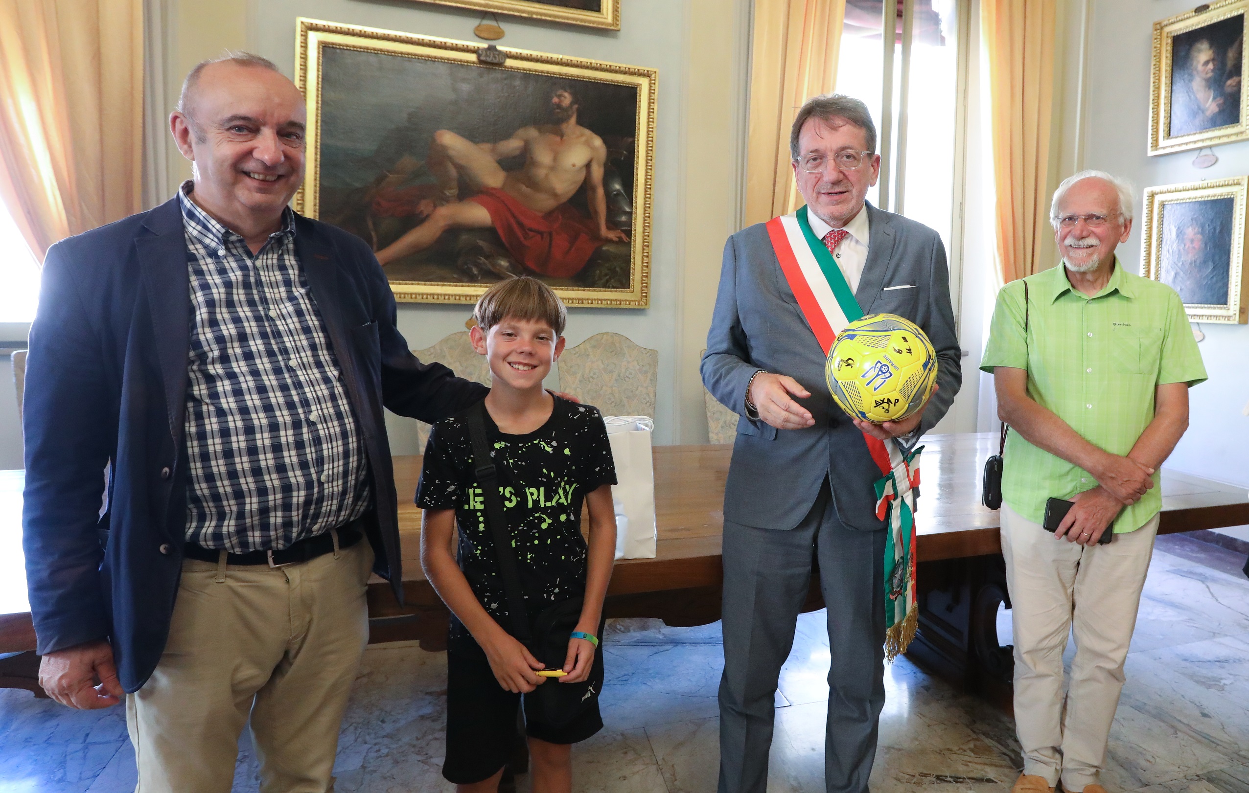 “Non siete soli. Modena, che ospita una comunità ucraina importante, è insieme a voi per aiutarvi a superare questo momento drammatico e a sperare nella pace”. Con queste parole il sindaco di Modena Gian Carlo Muzzarelli ha accolto in Municipio, nel pomeriggio di venerdì 8 settembre, i giovanissimi calciatori ucraini della Rozdillya Football Academie, ospiti di Porta Aperta per una giornata di visita a Modena accompagnati dal presidente Alberto Caldana e dal medico e volontario di Porta Aperta Giuliano Venturelli.