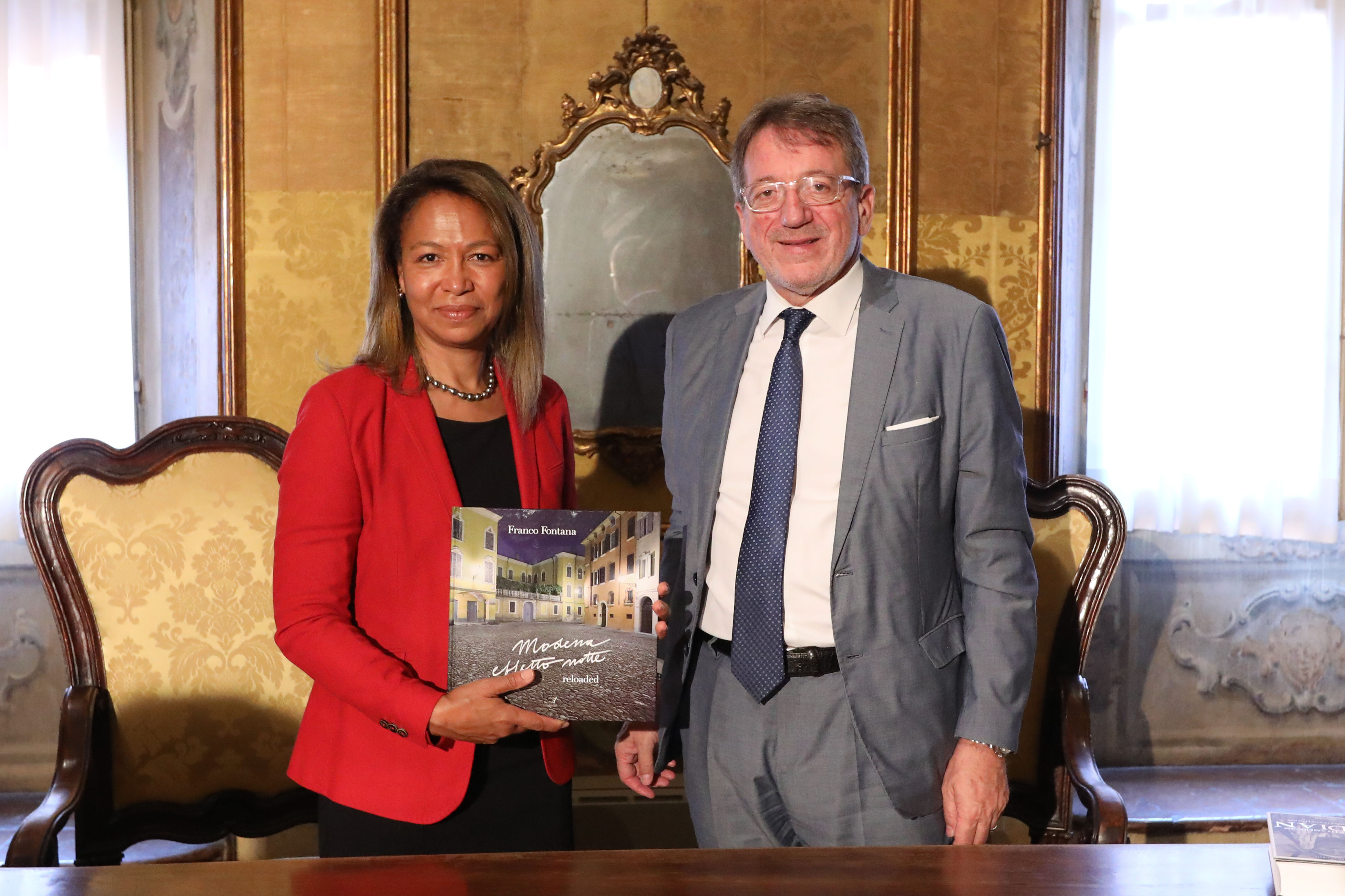 Alla diplomatica, infine, il sindaco ha donato una copia del volume “Modena Effetto notte” di Franco Fontana, ricevendo in cambio un volume sulla storia degli Indiani del Nord America.