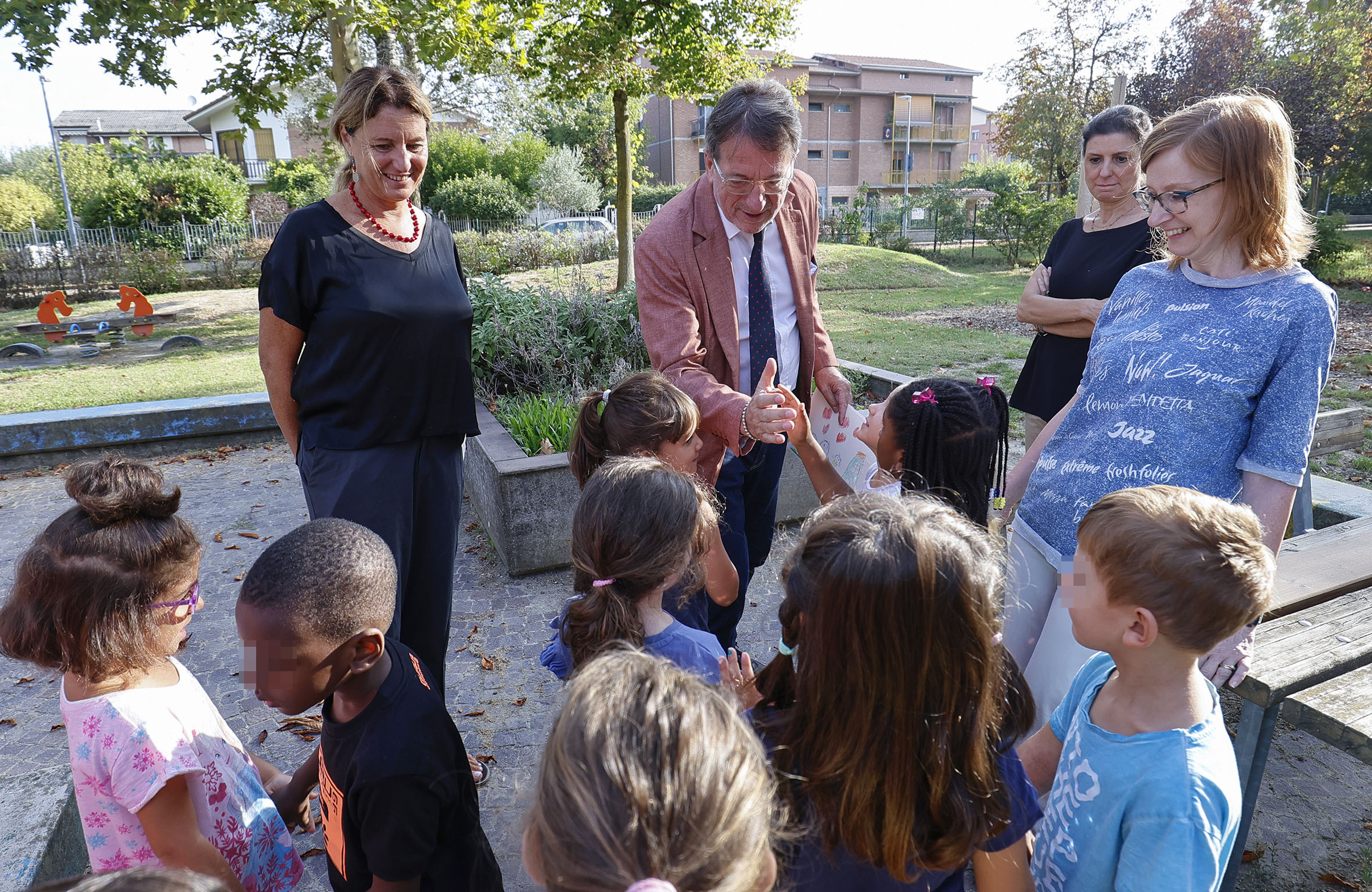 A salutarli e ad augurare simbolicamente un buon anno educativo ai piccoli, alle famiglie, ai docenti e al personale, questa mattina sono stati il sindaco Gian Carlo Muzzarelli e l’assessora all’Istruzione Grazia Baracchi in visita alla scuola d’infanzia comunale San Damaso, nella frazione omonima. Negli ultimi mesi la struttura di via del Giaggiolo, attiva fin dagli anni Settanta, è stata al centro di un progetto di rinnovamento degli spazi interni ed esterni e delle attrezzature finalizzato alla sperimentazione di un nuovo modello di apprendimento “che potrà favorire le inclinazioni personali di ciascun bambino, in un’ottica inclusiva e flessibile”, come ha spiegato la coordinatrice pedagogica Roberta Setti. “Il progetto innovativo ha coinvolto l’intera frazione – ha affermato l’assessora Baracchi – che si è presa davvero cura di questa scuola d’infanzia. È un valore aggiunto per un anno educativo che riparte al 100 per cento, con la presenza dei genitori anche all’interno della struttura”, come avveniva prima della pandemia. Augurando “buon anno educativo e scolastico a tutti”, il sindaco Muzzarelli ha sottolineato il valore “dei modelli educativi che nascono da radici modenesi fatte di valori e principi che diventano realtà, appunto, nell’applicazione dei servizi. Sempre nell’ambito di una comunità inclusiva e integrata con il territorio”. Il sindaco ha ricevuto in dono dai bambini un disegno realizzato proprio durante la visita.
